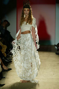時尚的實驗---如它所被定義的那樣---以擁有無數(shù)的褒獎和特殊的證明為榮耀,并在世界范圍內(nèi)擁有無數(shù)的追隨者。她設計的多樣性使將她帶到比利時首席設計師Micha Van Hoecke的服裝秀去設計高級女裝。她明了且有棱角的風格在她對顏色、材料和傳統(tǒng)的運用上無不發(fā)揮的淋漓盡致。Marella Ferrera的風格被描繪成既冷靜又線條明朗,通過對于一些原始材料的使用,像熔巖,玻璃,海芋,百合,無色水晶,刺繡雕刻,她常常創(chuàng)造出一些微型的藝術品.西西里亞、拉瓦、十勝石、陶瓦、無色水晶、銅、紙草以及紡織紙品,軟木和棕櫚樹根、皮革、緞帶、所有的蔬菜和動物的毛皮等等都會成為她穿著的重要的靈感來源。"...服裝必須是完美協(xié)調(diào)穿著者的東西,而不能讓人成為服裝的傀儡..."
