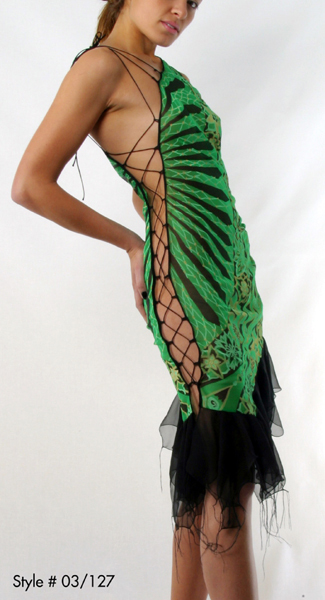 桑德拉?羅德斯是將倫敦推向七十年代時尚前沿陣地的英國新生代設(shè)計師之一。她的設(shè)計一直延續(xù)著透明光亮的風(fēng)格,極有創(chuàng)造性,浪漫,夸張且優(yōu)美,大膽且嬌柔,她所設(shè)計的服裝經(jīng)久不衰,這都是桑德拉?羅德斯的作品的特點。她的靈感一般都來源與有機(jī)的材料或者大自然。我對服裝工業(yè)的接近顛覆的舉動在于,她是第一個把衣服的縫口顛倒來縫的設(shè)計師,她是第一個把衣服的縫口顛倒來縫的設(shè)計師,也是第一個讓縫口在衣服上顯露出來的設(shè)計師。她為“朋克”設(shè)計花俏的時裝,并在她的“概念性時髦”系列時裝中用別針把撕碎的衣裙再接起來——比范思哲用同樣的手法設(shè)計時裝早了差不多二十年。