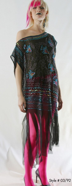 現(xiàn)年63歲的Zandra Rhodes,是英國乃至世界時裝界舉足輕重的人物,她所設(shè)計的朋克時裝在上個世紀(jì)70年代曾經(jīng)風(fēng)靡一時,并曾為Jackie Onassis, Diana Ross, Diana王妃設(shè)計造型。后來,隨著中性色調(diào)的流行,她用色鮮明、圖案大膽的設(shè)計風(fēng)格逐漸淡出時裝舞臺;但是,在進(jìn)入本世紀(jì)之后,新一代的年輕人又開始欣賞起她獨特的品位。