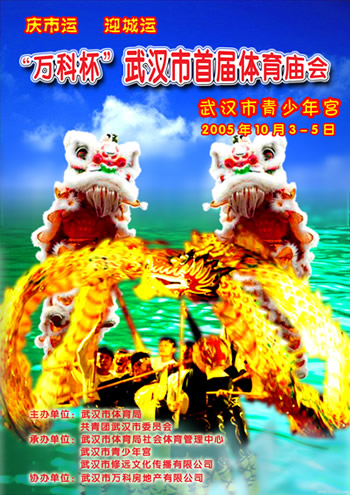 “萬科杯”武漢市首屆體育廟會將以“慶市運、迎城運,弘揚體育傳統(tǒng),豐富市民生活”為主題,秉承“體育精華表演為主,市民廣泛參與互動”的原則,分為水上表演,馬文化表演,武術絕技表演,健康家庭才藝展示,民間時尚體育表演,趣味體育互動游戲,體育產品、服務、地產、家裝及其它展示等七大活動板塊。廟會采用廣大民眾喜聞樂見的互動開放形式,將邀請部分國際棋牌大師、武林宗師、知名運動員和教練出席表演和互動活動,并安排了武漢市時尚體育極限運動表演、體育知識問答、體育舞蹈等三十多項活動。整個體育廟會活動集知識性、競技性、參與性、趣味性于一體。此外,由武漢市體育局提供的國民體質測試車,將免費為市民進行體質測試和運動咨詢。