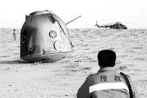 如今,“神舟”6號(hào)發(fā)射在即。與“神舟”5號(hào)相比,“神舟”6號(hào)的各種技術(shù)狀態(tài)又有質(zhì)的飛躍。為了滿足載人航天后續(xù)發(fā)展需要,我國已開始選拔培養(yǎng)首批女航天員。廣大航天工作者正在各自的崗位上,默默地奉獻(xiàn)著全部的心血和汗水。今后,他們還將用一個(gè)又一個(gè)飛天壯舉來證明中國人實(shí)現(xiàn)中華民族偉大復(fù)興的志氣、信心和能力! 2002年4月1日,“神舟”三號(hào)飛船在預(yù)定地域著陸。新華社發(fā)來源:《解放軍報(bào)》