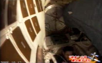 人民網 北京航天飛行控制中心10月13日訊 前方報道組報道:今天下午,神六首次傳回軌道艙畫面。