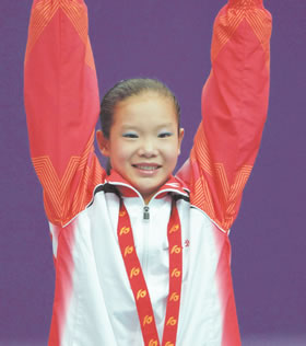 在個人全能賽中,程菲奪得銀牌,這是意外之喜,因為湖北隊將她的優(yōu)勢定位在跳馬和自由操上。那一晚,程菲格外耀眼。第一個項目跳馬便獲得9.734分的高分,雖然她在弱項高低杠中只得到9.100分,但程菲絲毫沒有放棄。在完成了平衡木和自由體操后,終于奪得銀牌。與以往不同的是,從不大愿意談自己的程菲居然夸起自己來了,“因為從未在全能項目上有過突破,所以這塊獎牌對我是個很好的鼓勵,會讓我在后面的比賽中更有信心!