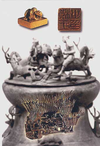 蛇鈕金印章:(上,邊長2.4厘米,高2厘米)