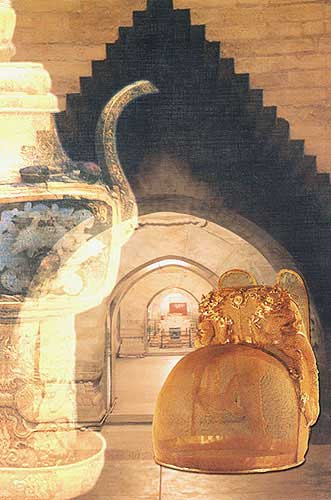 嵌玉龍、寶石金酒注:酒器(左,高21.8厘米) 金翼善冠:儀仗用具(右,高24匣米)[相關(guān)鏈接]:20世紀中國百項考古大發(fā)現(xiàn)(1-20)20世紀中國百項考古大發(fā)現(xiàn)(21-40)20世紀中國百項考古大發(fā)現(xiàn)(41-60)20世紀中國百項考古大發(fā)現(xiàn)(61-70)20世紀中國百項考古大發(fā)現(xiàn)(71-80)81、云崗石窟(圖)82、龍門石窟(圖)83、敦煌莫高窟(圖)84、龍興寺佛教造像窖藏(圖)85、隋大興唐長安城遺址(圖)86、隋唐洛陽城遺址(圖)87、隋代虞弘墓(圖)88、唐代帝陵陪葬墓(圖)89、法門寺塔基與地宮(圖)90、阿斯塔那墓地(圖)91、渤海上京龍泉府遺址(圖) 92、南唐二陵(圖)93、白沙宋墓(圖)94、遼陳國公主墓(圖)95、龍泉青瓷窯址(圖)96、耀州窯遺址(圖) 97、西夏王陵(圖)98、古格故城遺址(圖)99、元大都遺址(圖)100、明定陵(圖)
