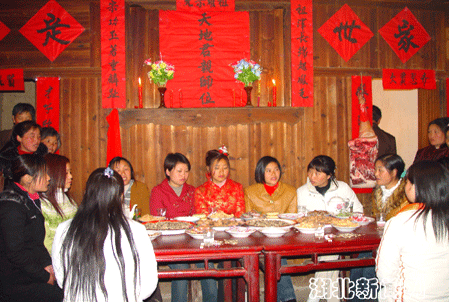 今年1月,該縣文化部門在采花鄉(xiāng)找到完整的“唐祭儀式”藝人班子。十幾名藝人雖然在解放后都沒有再進(jìn)行過“告祖”儀式,但整個(gè)程序記得十分清楚。經(jīng)協(xié)商策劃,決定利用男女雙方實(shí)景把“告祖”及土家婚俗完整真實(shí)拍攝下來。3月28日,市縣兩級(jí)文化工作專班和十六名民間藝人開赴傅家堰火山村,日夜奮戰(zhàn)4天,終于把“告祖”的整個(gè)程序以寫實(shí)手法拍攝下來。同時(shí),還拍攝到了土家婚俗中背新娘、吃雞蛋茶、抬花轎、陪十弟兄、陪十姊妹的珍貴鏡頭,把土家婚俗完整記錄了下來,為項(xiàng)目的申報(bào)工作進(jìn)一步夯實(shí)了基礎(chǔ)。