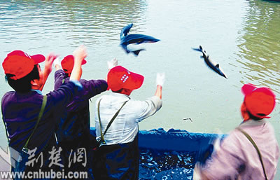 每年都向長(zhǎng)江投放大量人工繁育的幼鱘。湖北日?qǐng)?bào)記者楊平攝