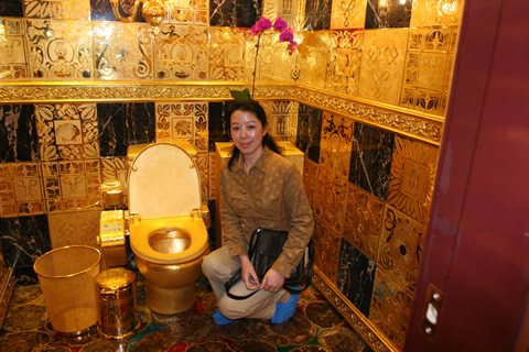 在2002年版的《吉尼斯世界紀(jì)錄》上有著這樣一條記錄:“用錢沖洗――世界上最昂貴的衛(wèi)生間由珠寶商林世榮制造,在他的中國(guó)香港商店售價(jià)240萬(wàn)英鎊。它完全由金子和昂貴的珠寶制成。抽水馬桶、洗臉臺(tái)、刷子、衛(wèi)生紙盒、鏡框、墻上架設(shè)的吊燈、墻上的瓷磚和門全部都由24K黃金構(gòu)成! “這里有一點(diǎn)寫得不對(duì),我的金廁所決不出售,我還要用它來(lái)專門注冊(cè)一個(gè)品牌,成為我們企業(yè)的象征!绷质罉s在接受記者采訪時(shí),詳細(xì)地解釋了自己對(duì)“金廁所”的感情。 現(xiàn)任香港恒豐金業(yè)科技集團(tuán)主席的林世榮說(shuō):“整個(gè)金廁所都是由我親自設(shè)計(jì)、監(jiān)督制造的,我甚至在工地呆過(guò)整整三天三夜沒(méi)有出來(lái),可以說(shuō)是傾注了極大的心血。很多人可能不了解我為什么會(huì)用這么多黃金來(lái)建造一個(gè)廁所,其實(shí)我不是為了炫耀,也不是喜歡奢侈浪費(fèi),我是在完成一個(gè)心愿。把土變成金了不起,把金變成土同樣了不起!