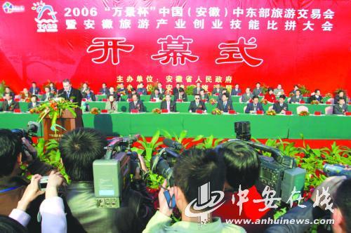 旅游盛會(huì)迎嘉賓,皖風(fēng)徽韻放異彩。12月1日,由省政府主辦、省旅游局承辦的“2006中國(guó)(安徽)中東部旅游交易會(huì)暨安徽旅游產(chǎn)業(yè)創(chuàng)業(yè)技能比拼大會(huì)”在合肥國(guó)際會(huì)展中心隆重開(kāi)幕。省委書記郭金龍宣布大會(huì)開(kāi)幕,省長(zhǎng)王金山在開(kāi)幕式上致辭。副省長(zhǎng)文海英主持開(kāi)幕式。