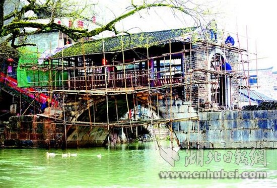 湖北日報訊 21日,工人們正在對咸寧市咸安區(qū)劉家橋古建筑風(fēng)雨橋進(jìn)行修繕。劉家橋古民居群始建于明成化9年,建筑群總面積達(dá)3.5萬平方米,被譽(yù)為“楚天民俗第一村”。修繕工程工期6個月,采用傳統(tǒng)工藝進(jìn)行修復(fù),以求最大程度地恢復(fù)古民居原貌。