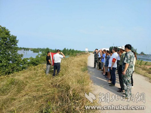 湖北日報網(wǎng)訊(全媒體記者張愛虎、通訊員敖瓊、龍鈺)“我志愿加入中國共產(chǎn)黨……”3日下午,嘉魚縣簰洲灣鎮(zhèn)簰洲灣大堤上,40多名黨員頭頂烈日,面對長江,面向黨旗,重溫入黨誓詞,學習省黨代會精神,鞏固防汛知識,落實防汛工作。