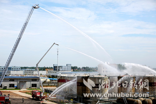 湖北日報(bào)網(wǎng)訊(全媒體記者張文龍 通訊員朱燕林、王孫致遠(yuǎn))12日,咸寧市政府組織消防、安監(jiān)、環(huán)保、衛(wèi)生、氣象等多部門,在嘉魚縣潘灣工業(yè)園湖北鶴翔工業(yè)有限公司舉行全市危險(xiǎn)化學(xué)品生產(chǎn)安全事故應(yīng)急救援演練。