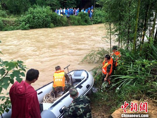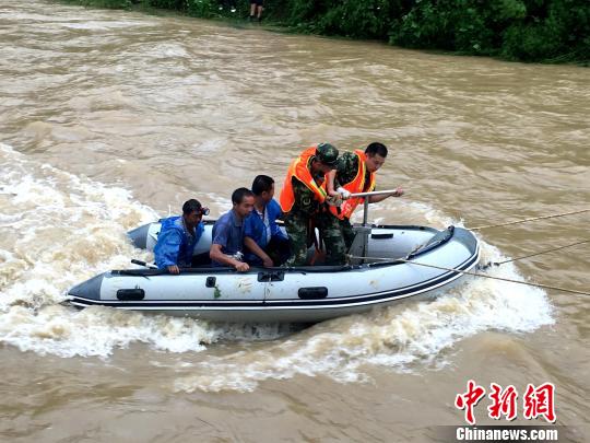 中新網(wǎng)咸寧8月13日電 (朱燕林 官易洲)13日6時(shí)23分,湖北咸寧市崇陽(yáng)縣消防中隊(duì)接到報(bào)警稱,該縣銅鐘鄉(xiāng)佛嶺村40人因山洪被困山上。接警后,消防官兵攜水面橫行艇、救生拋投器以及大繩等工具前往營(yíng)救被困人員。