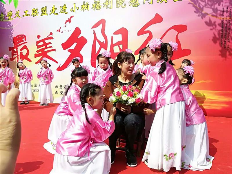 湖北日報網(wǎng)訊(全媒體記者張文龍、通訊員黃柱、張海燕)“因?yàn)槲覀兪且患胰?,相親相愛的一家人……”10月28日,在赤壁市赤壁鎮(zhèn)小柏村福利院,《相親相愛一家人》的歌聲響徹天際。當(dāng)天,農(nóng)歷九月初九,是我國傳統(tǒng)節(jié)日重陽節(jié),來自蒲紡歌舞團(tuán)、赤壁中醫(yī)院、蘭心惠質(zhì)旗袍群、赤壁市機(jī)關(guān)幼兒園等單位的志愿者,相約來到福利院,陪58位老人歡度佳節(jié)。