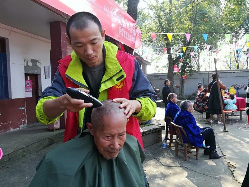 當(dāng)天上午8時,志愿者們走進(jìn)福利院。一下子來這么多人,老人們高興得合不攏嘴。拉完家常,志愿者們開始分工做服務(wù),有搭舞臺的,有準(zhǔn)備食材做菜、做飯、包餃子的、有擺桌椅板凳的、有分配水果零食的、有為老人理發(fā)、按摩、修指甲的、中醫(yī)院的護(hù)士免費(fèi)給老人做體檢、小朋友為老人端茶等。