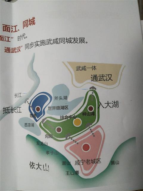 與2010版的城市發(fā)展規(guī)劃不同,咸寧將由“臨山簇林”時代邁向“擁湖面江”時代,未來咸寧將按照“依大山、入大湖、抵長江、通武漢”的發(fā)展路徑,同步實施武咸同城發(fā)展戰(zhàn)略。