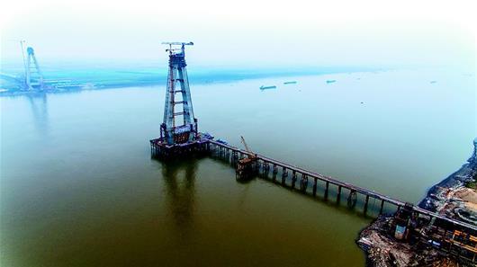 湖北日?qǐng)?bào)訊 12月4日,正在建設(shè)中的嘉魚長江公路大橋南北主塔分別達(dá)到164米、158米,相當(dāng)于50多層樓高。大橋建設(shè)者開展勞動(dòng)競賽,力爭在2018年春節(jié)前完成主塔封頂。咸寧市擁有128公里長江岸線卻沒有一座長江大橋,嘉魚長江公路大橋2019年底建成通車后,將終結(jié)咸寧無長江大橋的歷史。 (湖北日?qǐng)?bào)全媒記者 陳勇 通訊員 周漓 攝)