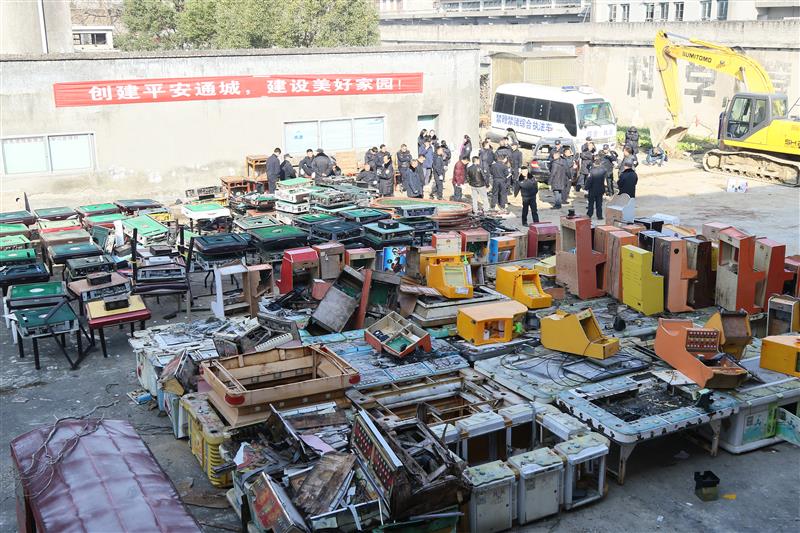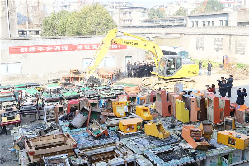 湖北日報訊(記者陳嶼、通訊員劉建平、吳忠勇)12月20日上午10時許,隨著指揮人員一聲號令,從通城各鄉(xiāng)鎮(zhèn)收繳的152臺涉賭電子游戲機(jī)、186臺麻將機(jī)被集中銷毀。