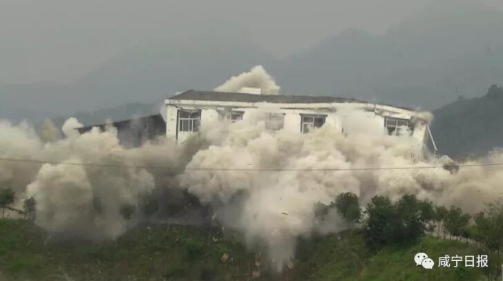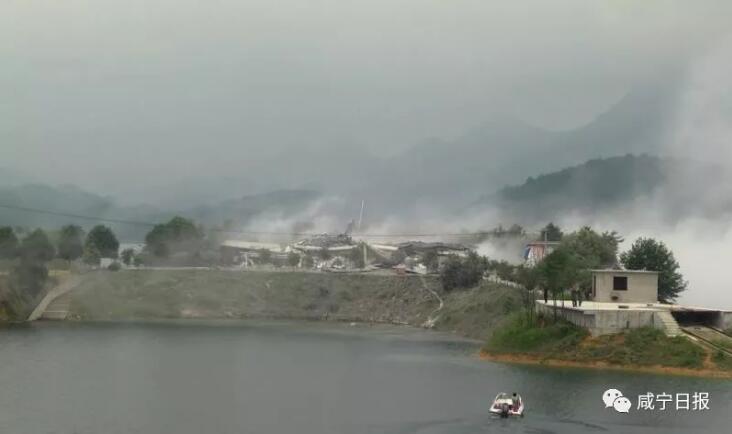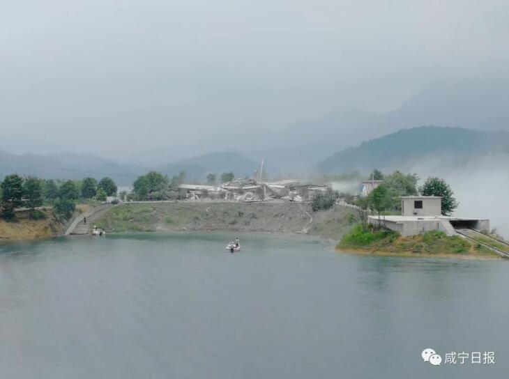 6月2日上午10:30整,隨著“轟”的一聲巨響,崇陽縣青山水庫里的孤島上,一座白色建筑物瞬間坍塌成為廢墟。