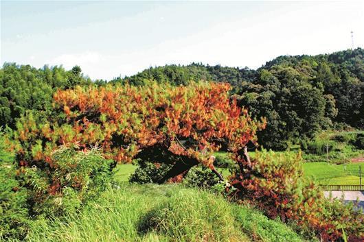 村民們介紹,今年8月8日左右,他們出門干活時,抬頭發(fā)現(xiàn)這棵古樹有部分針葉發(fā)黃。村民感覺不對,立即找到村支書反映,村支書迅速上報九宮山鎮(zhèn)政府及林業(yè)部門。鎮(zhèn)政府高度重視,鎮(zhèn)林業(yè)站站長成獻忠緊急趕往現(xiàn)場查看后,向縣森防站求助。