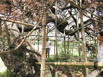 眼看這棵長了400多年的古松奄奄一息,當?shù)卮迕裥耐床灰?。村民們向楚天都市報記者表示,只要有人能將這棵樹救活,全體村民愿捐款為他打賞。