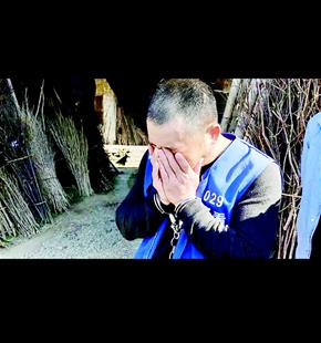 圖為:17年后,余明梁指認(rèn)殺害未婚妻的老屋時(shí)掩面而泣