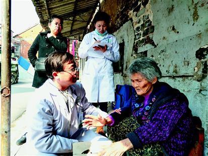 “耿婆婆好!我們來看您了?!痹谝蛔戏孔忧埃?6歲的耿良英老人正在曬太陽??吹絼⑨t(yī)生,她手指著胸口說:“我的胃病又犯了,還頭暈,正想給你們打電話呢?!眲⑨t(yī)生仔細詢問,量體溫、測血壓,看老人體溫、血壓都正常,就叮囑老人按時服藥,并讓護士小尹在老人常備藥的包裝上寫清用法,隨后兩人繼續(xù)巡診。每月固定巡診兩次,隨時接受病人及家屬咨詢,緊急情況隨叫隨到。這是他們提供簽約家庭醫(yī)養(yǎng)服務(wù)內(nèi)容的標(biāo)配。