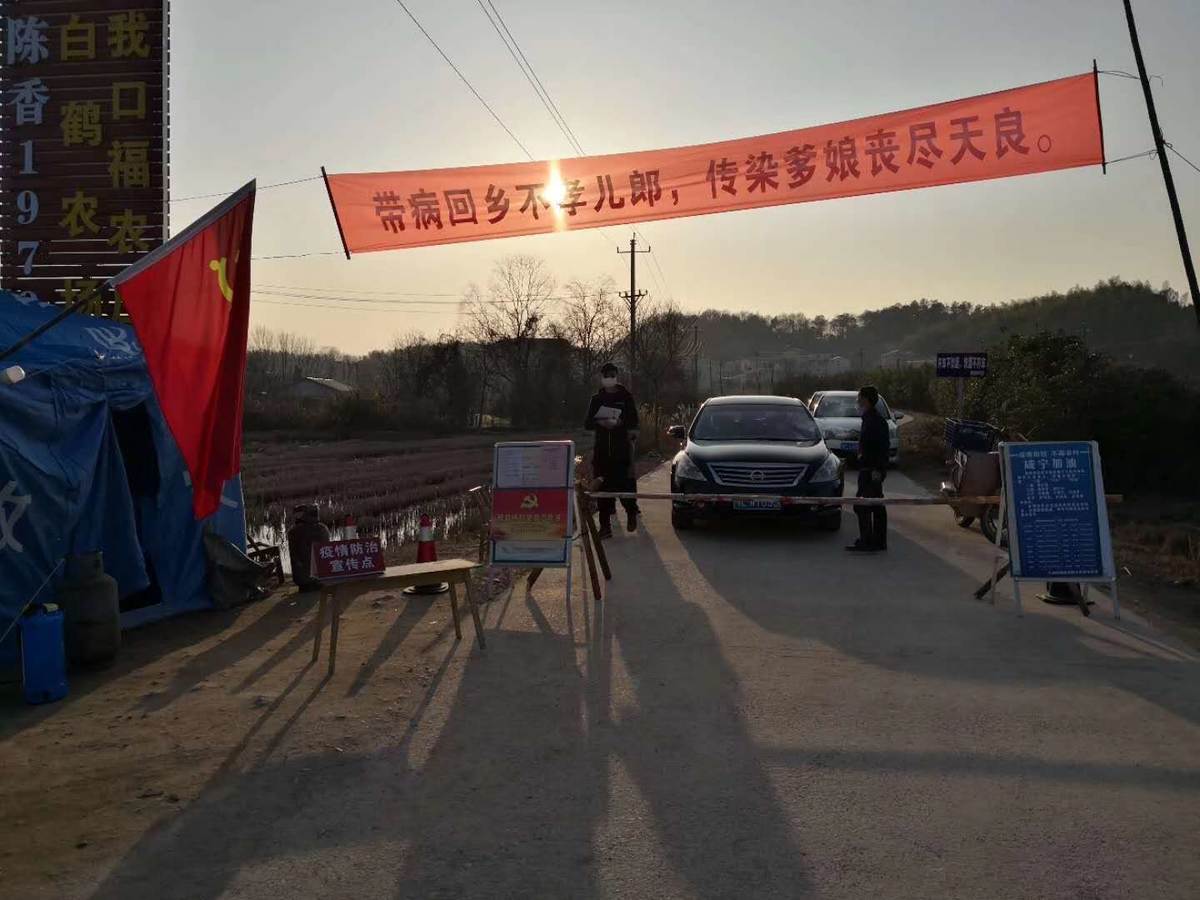 在汀泗橋鎮(zhèn)洪口村一條刷黑村道上,一輛宣傳車正在不停地滾播咸安區(qū)新冠肺炎防控指揮部公告。