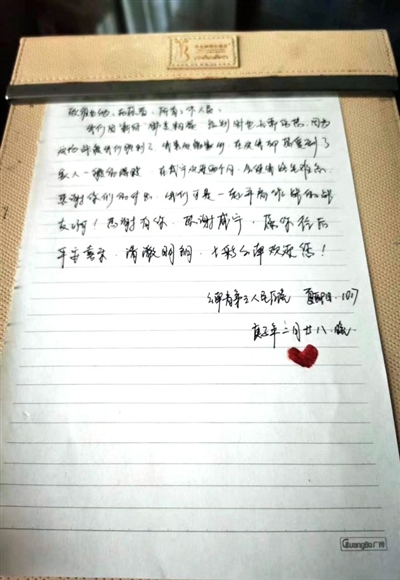 醫(yī)療隊(duì)隊(duì)員夏亞陽(yáng)給維也納志愿者、所有工作人員留下一封信:我們因新冠肺炎相遇,離別時(shí)也無(wú)需傷感。因?yàn)檫@場(chǎng)戰(zhàn)疫我們勝利了。我雖遠(yuǎn)離家鄉(xiāng),在這里卻感受到了家人一般的溫暖。在咸寧近兩個(gè)月,會(huì)使我終生難忘,感謝你們的付出,我們科室一起并肩作戰(zhàn)的戰(zhàn)友??!感謝有你,感謝咸寧,愿往后平安喜樂(lè)、清澈明朗,七彩云南歡迎您!