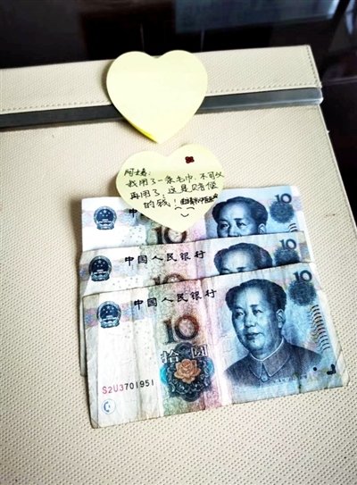 來(lái)自曲靖市中醫(yī)醫(yī)院的一位隊(duì)員用了一條毛巾,留下30元錢,并用便利貼寫著:“阿姨,我用了一條毛巾,不可以再用了,這是賠償?shù)腻X!”