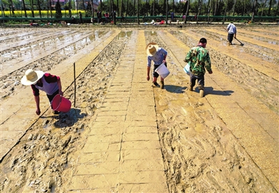3月18日,咸安區(qū)俊敏種植專業(yè)合作社的社員們正忙著鋪秧盤、撒谷種。日前隨著氣溫回升,在做好新冠肺炎疫情防控的基礎(chǔ)上,咸安區(qū)搶抓農(nóng)時(shí)開展早稻春播生產(chǎn),組織當(dāng)?shù)厮膫€(gè)專業(yè)合作社搭建中型水稻集中育秧基地2個(gè)、小型水稻集中育秧基地2個(gè),通過規(guī)?;?、標(biāo)準(zhǔn)化集中育秧提高種植效率,為村民提供水稻集中育秧和機(jī)械化插秧一條龍托管服務(wù),助力當(dāng)?shù)剞r(nóng)民早稻春播。