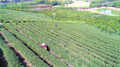 1日,咸安區(qū)汀泗橋鎮(zhèn)黃荊塘村茶園綜合體,村民穿梭在綠意蔥蘢的茶園里忙著采茶。該村茶園綜合體今年可采摘面積2000余畝,規(guī)劃打造萬(wàn)畝茶園。
