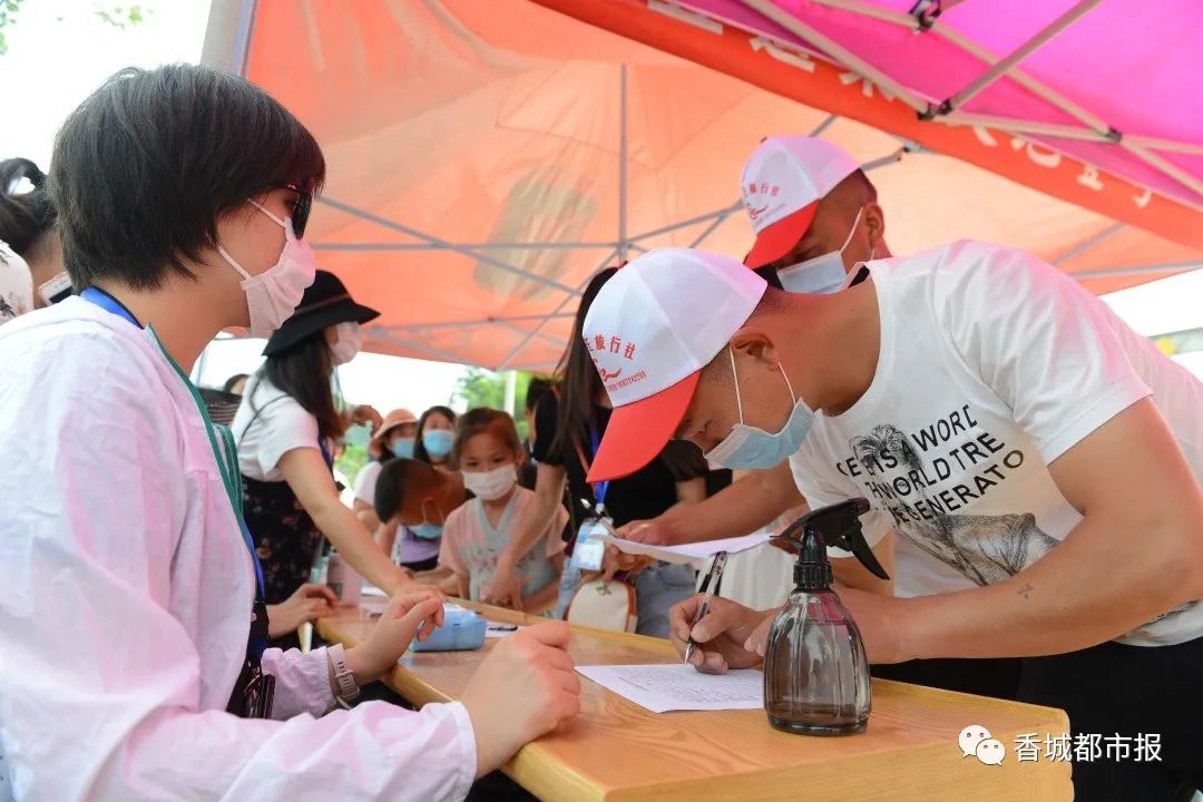 上午9點,石門村渡槽下的廣場上已是一番熱鬧景象。入口處的登記臺擺著“防疫三寶 ”——體溫檢測儀、消毒酒精、口罩,所有人員通過健康測溫,登記完方可入場。