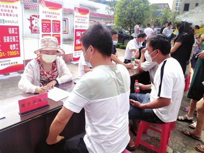 了解這一情況后,社區(qū)黨員干部立刻與咸安區(qū)永安個私協(xié)聯(lián)系,通過協(xié)會牽線搭橋,組織開展本場招聘會。社區(qū)居民鄭小紅原本在廣東一家電子廠打工,受疫情影響,她今年沒有外出返崗。想著孩子即將開學復課,鄭小紅當天來到現(xiàn)場求職,很快,她與湖北成奧汽車服務有限公司達成初步就業(yè)意向。“因為疫情的原因一直待在家里,就靠老公一個人賺錢也不容易,心里挺著急的,就急需找到一份滿意的工作。今天恰恰有這么好的機會達成我的心愿了。薪資待遇跟外面差不多,還是比較滿意的?!焙袜嵭〖t一樣開心的還有居民周霞,周霞此前也在外地打工,通過這次招聘會,周霞在家門口找到了一份新的工作,5日她就到咸安區(qū)萬家興燈籠廠上班了。