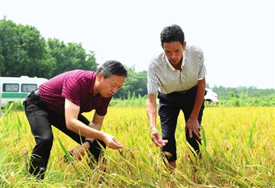 排澇搶收減損失 14日,赤壁農(nóng)業(yè)農(nóng)村局產(chǎn)業(yè)股股長錢直榮和農(nóng)藝師金剛來到車埠鎮(zhèn)梅湖村指導村民搶收搶種??吹睫r(nóng)技人員下到田中,周邊農(nóng)戶都圍攏過來,期待他們的技術(shù)指導。