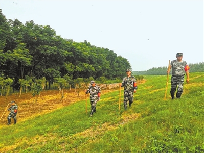 “這個插上紅旗做標志的地方是地質鉆口,雖已封口,但每次巡堤一定要來檢查,看周圍是否有異?!边@是朱天志給新上堤的“90后”防汛突擊隊員唐文講巡堤技巧和相關要領。