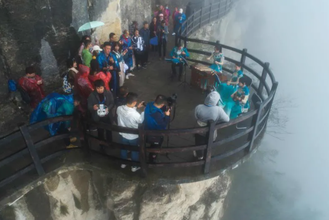 恩施大峽谷七星寨景區(qū)索道上站觀景平臺(tái)上,隨著恩施市文旅形象歌曲《情漫恩施》的精彩呈現(xiàn),精品演藝和非遺進(jìn)景區(qū)系列活動(dòng)正式拉開帷幕。男聲獨(dú)唱《大峽谷有哈數(shù)》、儺戲表演《開葷敬酒》、歌舞《我在恩施等著你》等精品演出節(jié)目向游客送上一場(chǎng)精彩的文化藝術(shù)盛宴,同時(shí)獻(xiàn)上一份特別的中秋國(guó)慶雙節(jié)禮物。