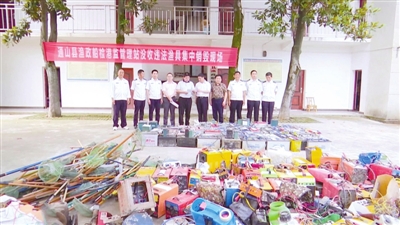 合力“嚴(yán)管”形成高壓。7月中旬以來,組織執(zhí)法行動(dòng)211次,出動(dòng)執(zhí)法船艇和車輛230臺(tái)次,參與執(zhí)法人員1031人次,現(xiàn)場(chǎng)查獲并銷毀各類非法漁具632套、違法電捕設(shè)備21臺(tái)(套),查扣非法捕撈漁船2 艘,行政處罰54人,行政罰款1.4萬元,批評(píng)教育300余人,刑事立案1起,形成了有效震懾。
