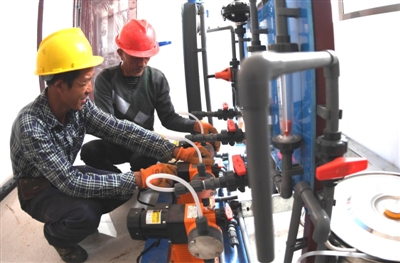 20日,通山縣黃沙鋪鎮(zhèn)萬家水廠,技術(shù)員在對設(shè)備進行調(diào)試。