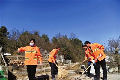 村民打掃道路衛(wèi)生