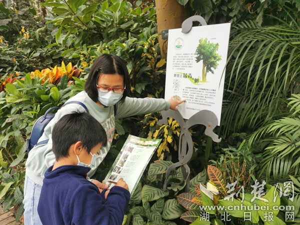 “哇,箭毒木,世界上最毒的樹就是長這樣的嗎?”在千奇百怪、生機勃勃的熱帶雨林,有很多讓人驚奇的植物。武漢植物園科普老師魏妮娜帶領(lǐng)親子家庭走進武漢植物園景觀溫室熱帶雨林室,了解雨林奧秘:“這是龍血樹,會流出褐紅色的汁液。龍血樹是珍貴的藥用植物,是配制活血良藥‘血竭’的主要原料。”隨后,小朋友發(fā)現(xiàn)一顆大樹的樹干和樹枝上長著鳥巢蕨、蘭花等上10種植物,就像一個“空中花園”。