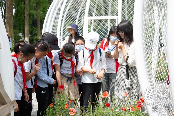 在武漢植物園本草園的西側(cè)的活體罌粟展示區(qū),五個白色的罌粟果實狀籠子格外顯眼?;顒蝇F(xiàn)場,湖北省禁毒委員會、武漢植物園和梅苑學(xué)校師生代表一起為活體罌粟展示區(qū)改造工程揭幕,標(biāo)志著武漢植物園禁毒科普教育基地重新開園。