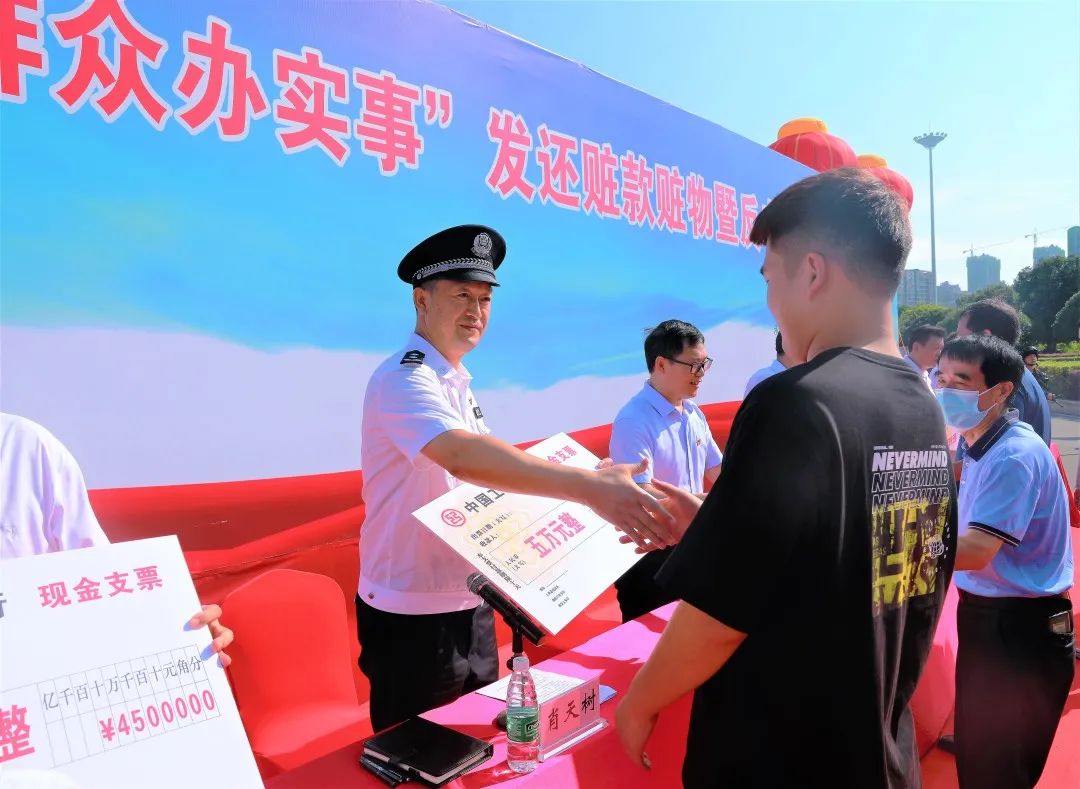 通過(guò)此次退贓大會(huì),進(jìn)一步向全市人民展示了咸寧公安扎實(shí)開(kāi)展“我為群眾辦實(shí)事”活動(dòng)成效,以及嚴(yán)打嚴(yán)防各類犯罪,致力“打防管控宣”,堅(jiān)決斬?cái)嗌煜蛉罕婂X袋子的黑手。