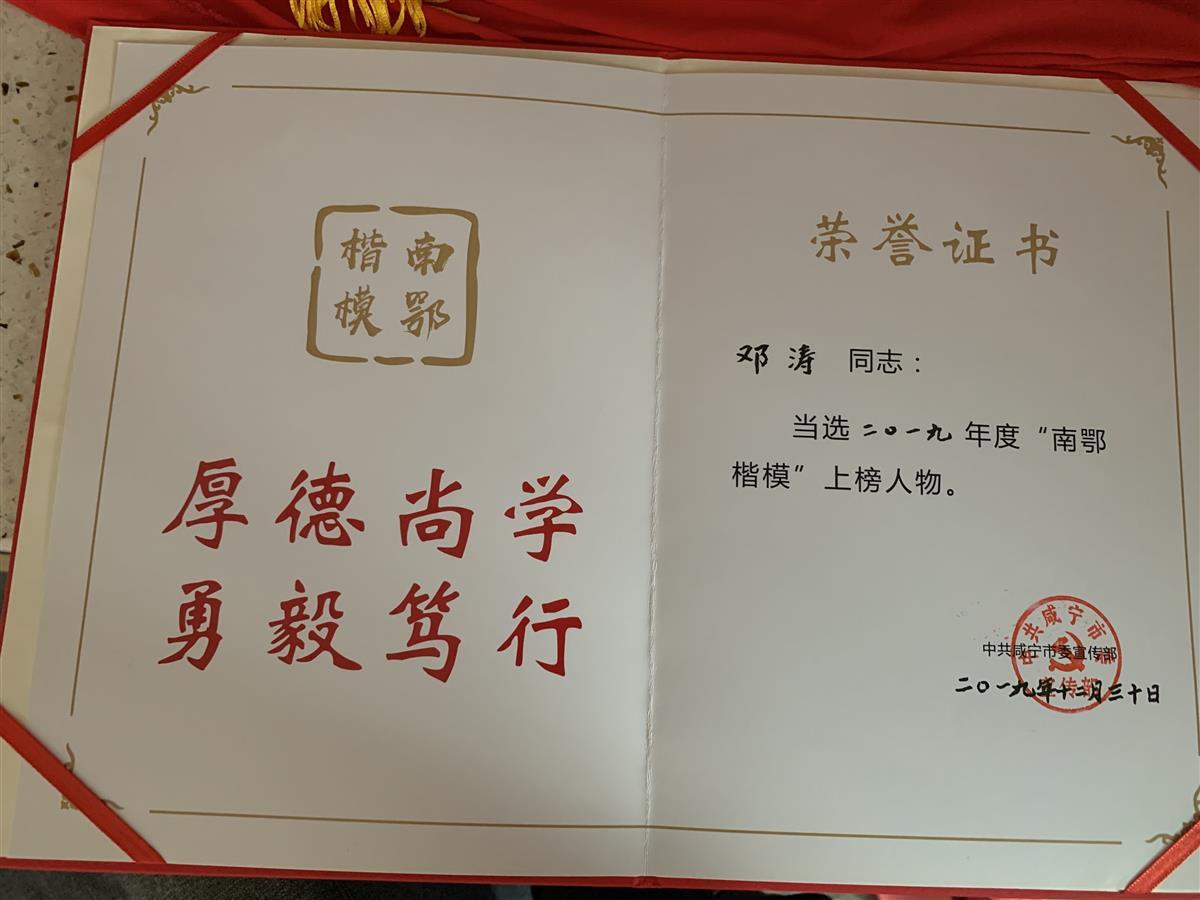 湖北省道德模范、“南鄂楷?!?、咸寧市見義勇為先進個人、通山縣見義勇為先進個人……翻開鄧濤的一項項榮譽,妻子陳娜的眼眶開始濕潤起來。