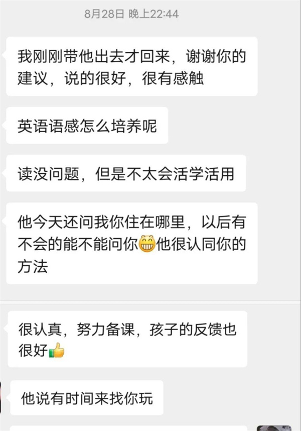 2021年的第一次線上志愿輔導(dǎo)在我的激動、欣喜、緊張交錯之中開始了。第一步也是最重要的一步:和家長進(jìn)行交流與溝通。說實話,我的心里還是非常忐忑的:害怕家長不回復(fù)消息,害怕不能很好地了解小朋友的學(xué)習(xí)狀況。但其實邁出溝通的第一步之后,后面的對話就很自然了,并沒有想象中的那么困難和緊張。而且很幸運的是,家長很配合我們的輔導(dǎo)活動,我的心里瞬間就放松了不少,自信心也莫名大增!被叫老師,真是很久違的感覺,令我成就感倍增,獲得了家長的稱贊也讓我很開心。而我本身也很喜歡數(shù)學(xué),希望我的興趣可以感染到小朋友,讓她也能喜歡數(shù)學(xué)。也希望通過基本的閱讀寫作教學(xué),讓她能夠提升自己。