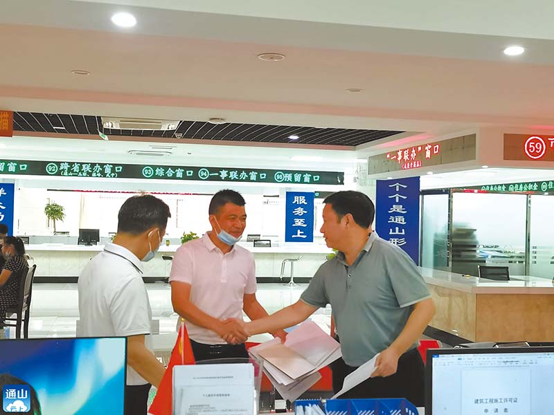 “1個(gè)地塊5個(gè)證,一共25個(gè)證,沒想到一天就能拿到手!”9月30日下午,在通山縣政務(wù)服務(wù)中心工程建設(shè)項(xiàng)目綜合審批窗口,通山縣興達(dá)鞋業(yè)有限公司經(jīng)理程宏兵從縣住建局局長手中接過厚厚的一摞證,意味著通山縣興達(dá)鞋業(yè)有限公司在通山的地塊達(dá)到開工條件。