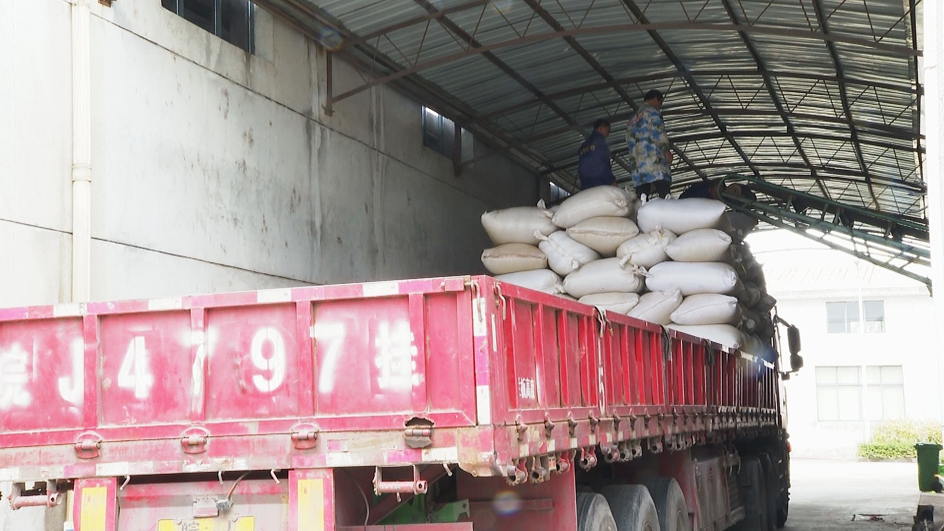 湖北雙獅茶業(yè)股份有限公司總經(jīng)理 薛海宏:我身邊正在裝車的是綠茶,一共有23噸貨,今天發(fā)到安徽省黃山市進行包裝,它的目的地是法國,整個貨柜價值8萬美金。