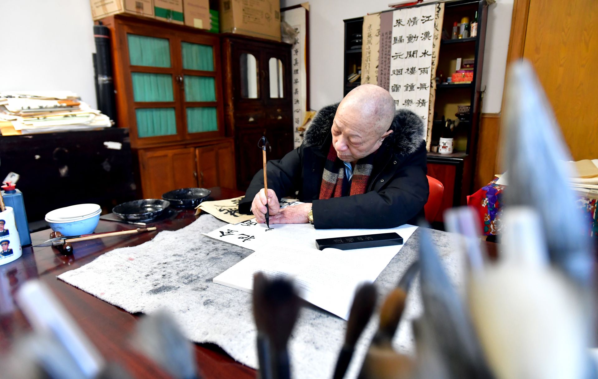 上網(wǎng)看新聞小視頻,散步聽收音機(jī)……夏漢生的學(xué)習(xí)方法也在與時(shí)俱進(jìn)。他說:“學(xué)習(xí)對(duì)我來說就是享受,讓我更快樂,更熱愛生活?!卞憻?、書法、下棋、音樂、上網(wǎng)……不僅僅是讀書看報(bào),這種好學(xué)的精神體現(xiàn)在他生活的方方面面。