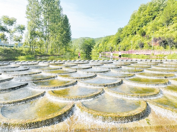 日前,游客在房縣馬尾河化龍堰鎮(zhèn)上灣村段人工蓮花瀑布前的磨盤壩上游玩。近年來,房縣全域?qū)嵤┖恿魉鷳B(tài)修復,提升轄區(qū)314條河流水質(zhì),沿河建設濕地公園、水體景觀等,吸引游客前來觀光,實現(xiàn)“水景觀、水生態(tài)、水經(jīng)濟”有機融合。