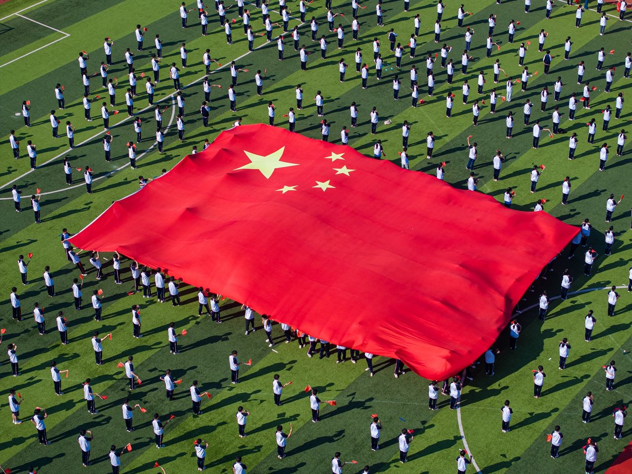 超大規(guī)格的國旗驚艷亮相。黃石日報(bào) 周巍 攝